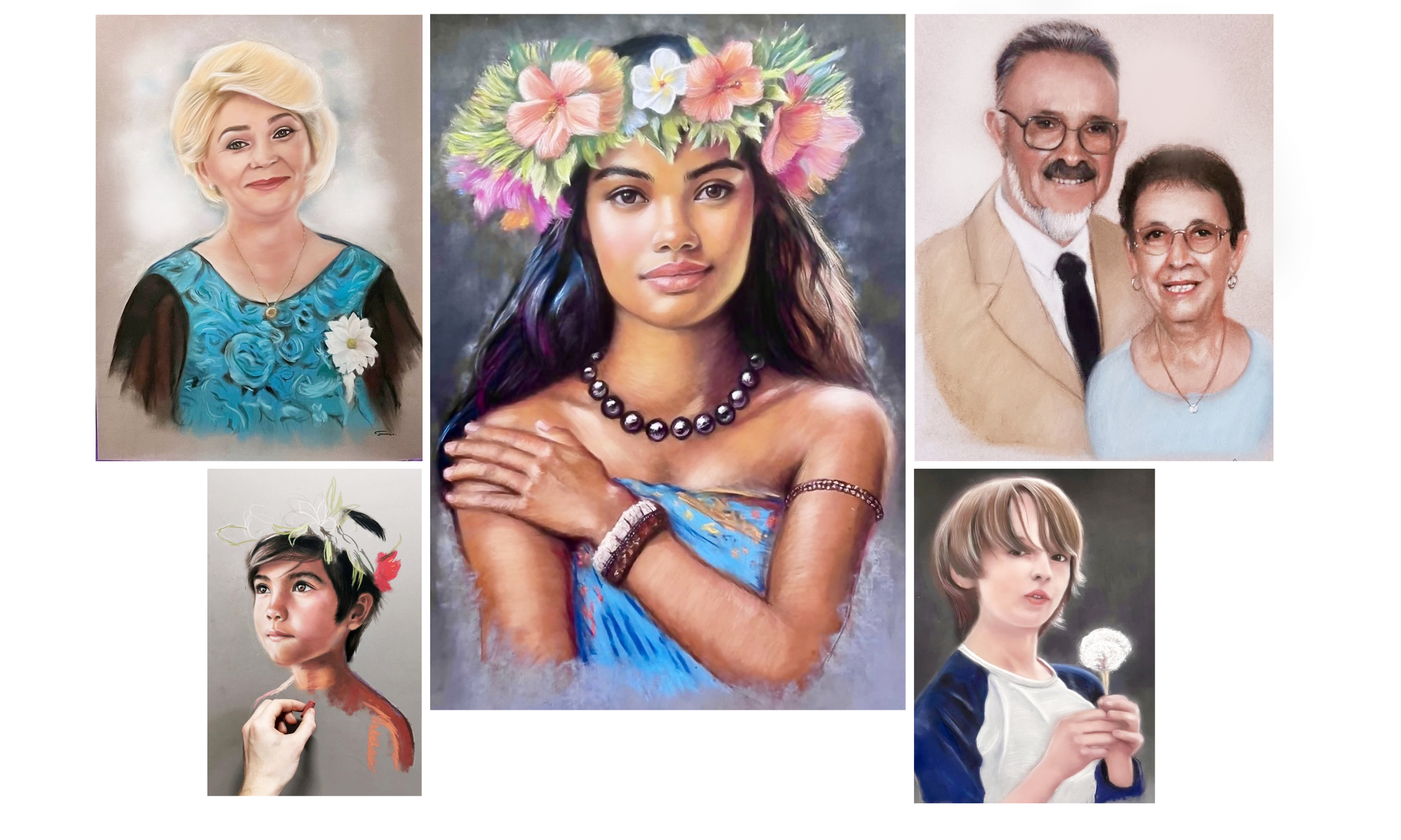 Chaque portrait au pastel est une oeuvre d'art unique réalisée entièrement à à la main à partir de vos photos : enfants, parents, grands-parents, couples, animaux de compagnie ou sauvages.